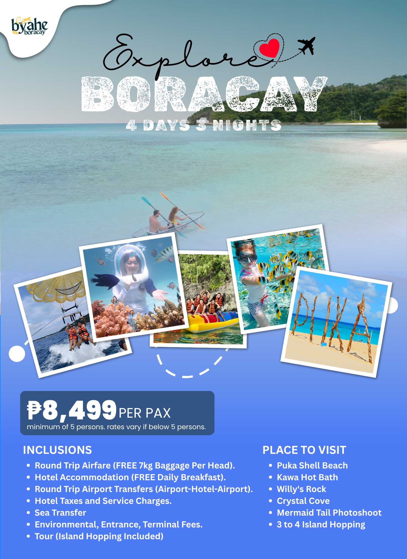 09:00 – 09:30 — Arrive Boracay → hotel check-in